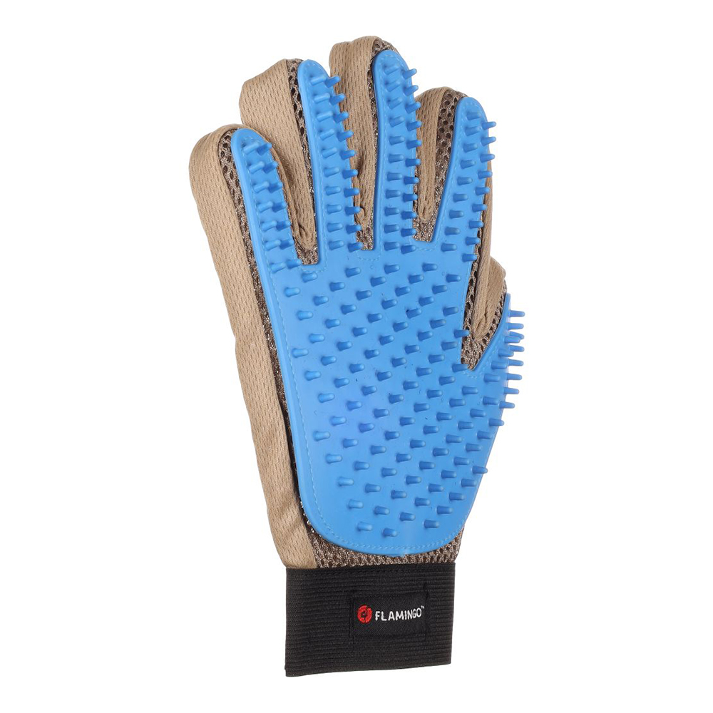 Karvkatte hoolduseks ja massaažiks. Varustatud kvaliteetse silikoonkattega. Sobib kasutamiseks pesemise ajal. Hingav ja kiiresti kuivav materjal. Paigaldatav iseliimuv sulgur. Tootja: Flamingo Pet Products, Belgia. Toodetud Hiinas. Maaletooja: Vetfarmas OÜ, Sõpruse pst. 145A, 13425 Tallinn, info@vetfarmas.ee